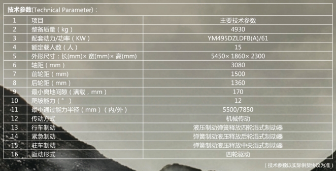 WC15R防爆柴油機(jī)無軌,膠輪機(jī)車配套我公司生產(chǎn)的YM495DZLDFB(A)防爆柴油機(jī)為動力、機(jī)械傳動、全液壓濕式制動,液壓助力轉(zhuǎn)向,后開門全封閉運(yùn)人車廂,同時(shí)配有安全門和安全鎖,整車配有減震系統(tǒng),乘坐舒適。適用于煤礦井下載人作業(yè)?!盵”型斷面縱梁,機(jī)車為平頭,采用煤礦工程車專業(yè)加強(qiáng)底盤,具有結(jié)構(gòu)緊湊、駕駛舒適、乘坐方便、爬坡能力強(qiáng)、運(yùn)輸效率高等優(yōu)點(diǎn)。